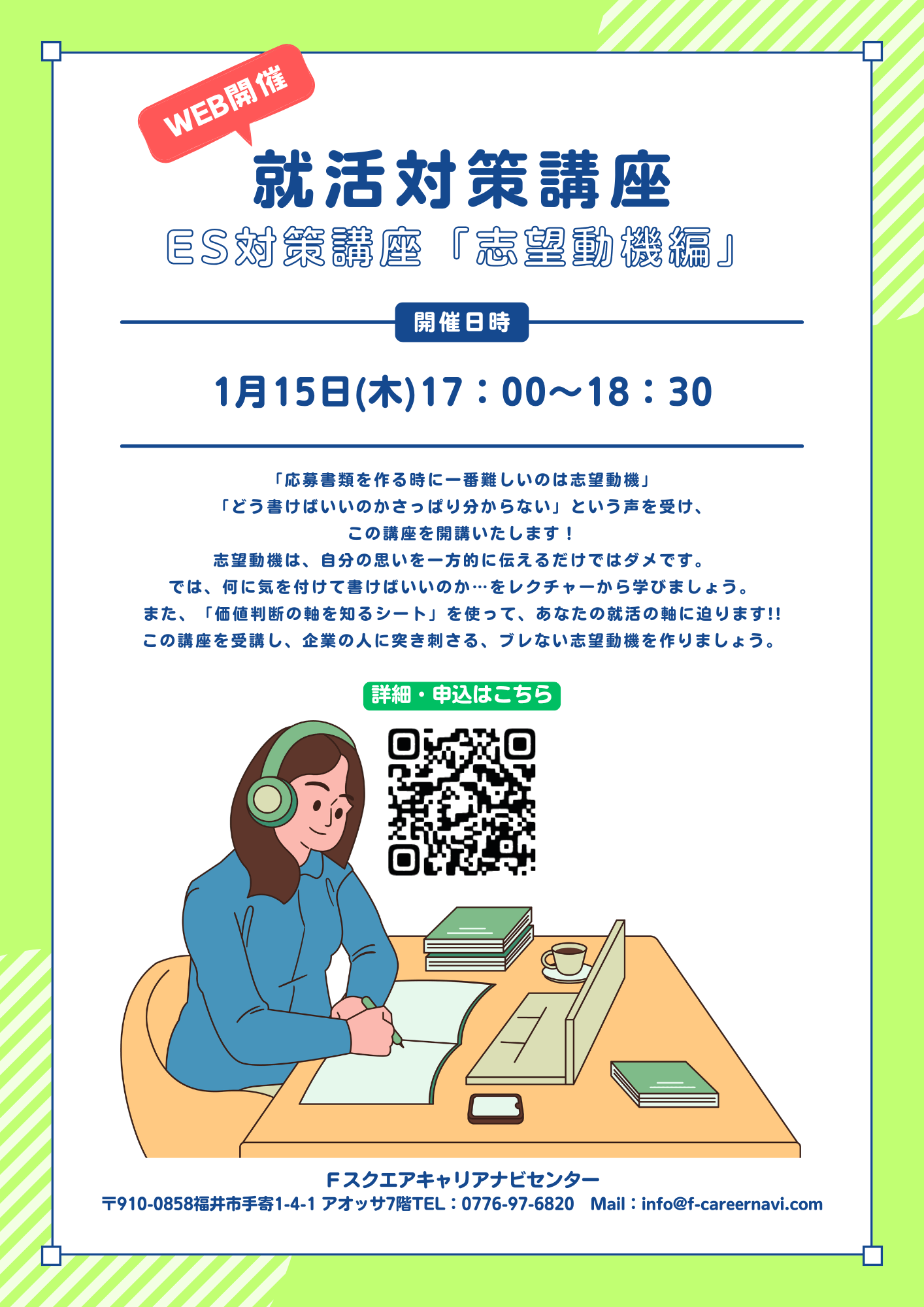就活講座「ES対策講座~志望動機編~」(1/15 ※オンライン開催)