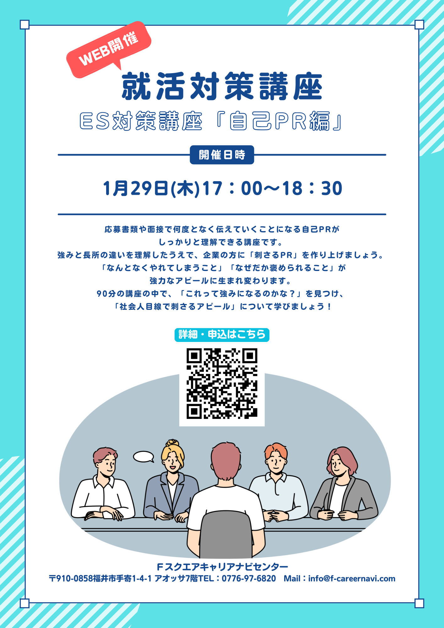 就活講座「ES対策講座~自己PR編~」(1/29 ※オンライン開催)